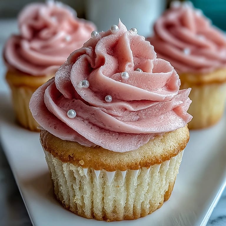 If vanilla feels too simple for your moment, add half a teaspoon of vanilla bean paste to the batter for a deeper, more sophisticated flavor that guests will notice but can't quite name. You can also steep the milk with a chamomile tea bag for five minutes before using it, which adds a subtle floral note that pairs beautifully with the pink frosting and feels unexpectedly elegant.
