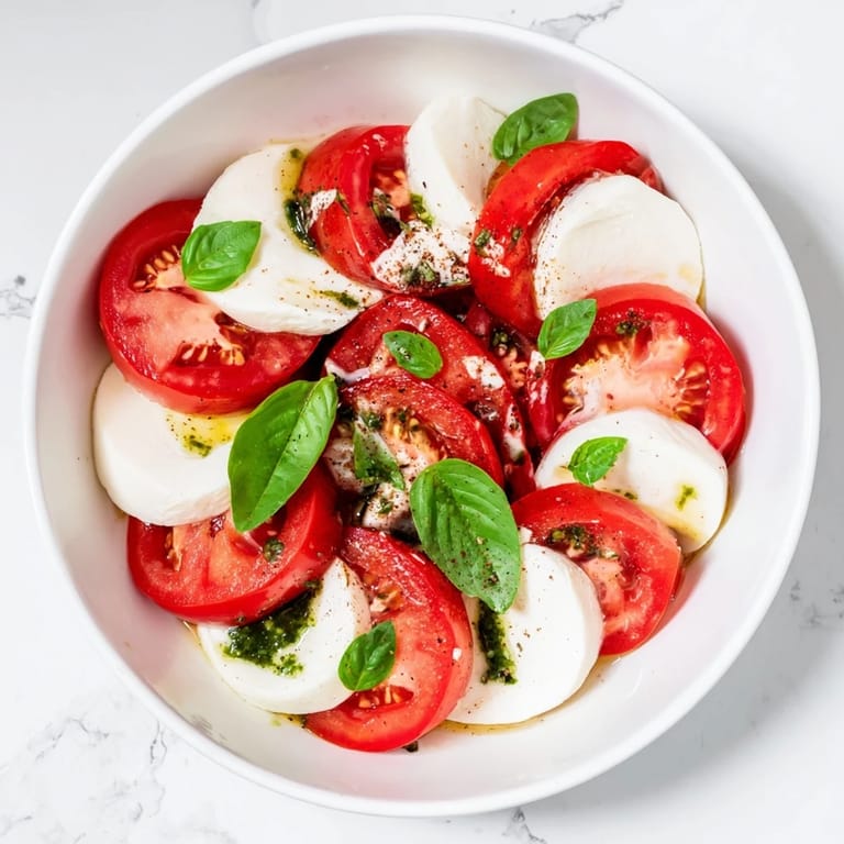 Save A vibrant, herb-infused twist on the classic Caprese salad, featuring juicy tomatoes, creamy mozzarella, and a zesty basil vinaigrette. Perfect as a light meal or a refreshing starter.