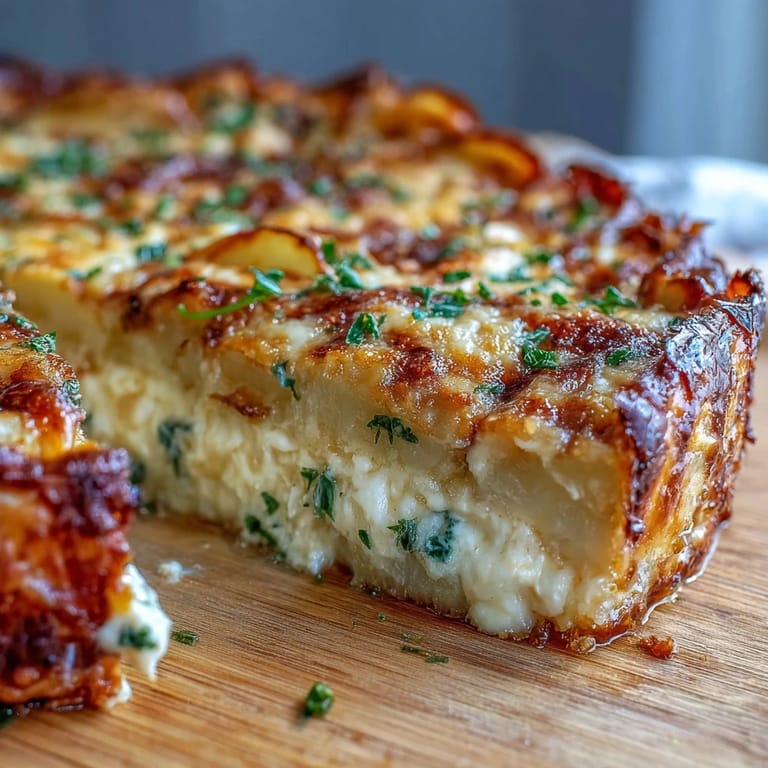 Save The smell of onions softening in butter always pulls me back to a chilly November evening when I needed something warm and filling without much fuss. I had potatoes, a wedge of cheddar, and some cream that needed using. What started as improvisation turned into something so comforting that I scribbled the rough idea on a grocery receipt. That scrap of paper became this pie, and I've been making it ever since.