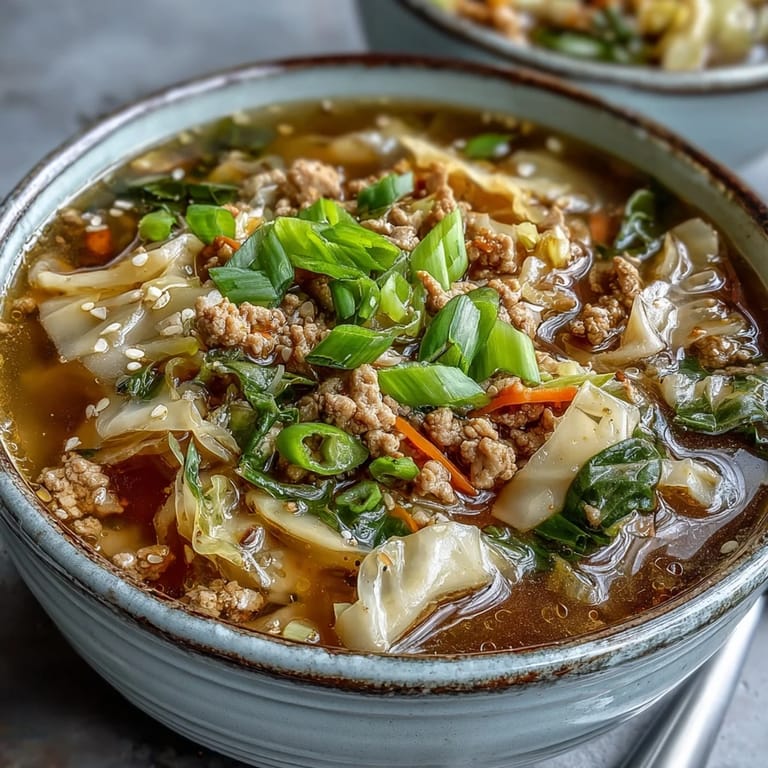 Save There's something uniquely comforting about a steaming bowl of soup that captures all the flavors of your favorite takeout dish. This Cozy One-Pot Egg Roll Soup transforms the beloved Asian appetizer into a hearty, soul-warming meal that's perfect for chilly evenings or whenever you need a bit of culinary comfort. The familiar combination of savory ground pork, aromatic ginger, and crisp cabbage comes together in a fragrant broth that will fill your kitchen with irresistible aromas.