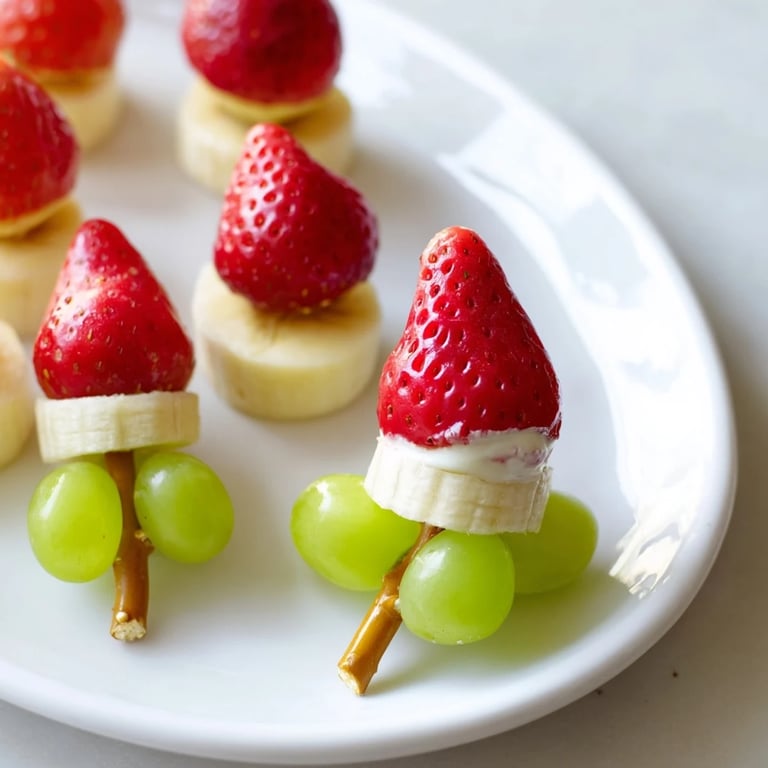 Save A playful and healthy snack featuring juicy strawberries, banana slices, and grapes, perfect for kids and festive gatherings.