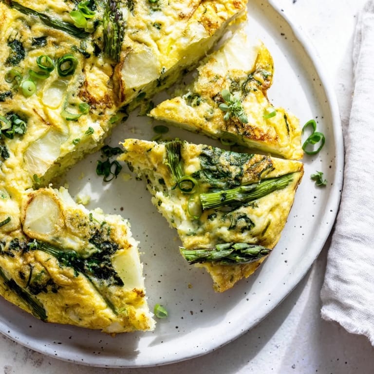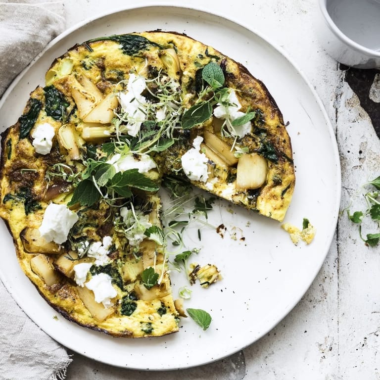 Save A fluffy, golden frittata brimming with tender spring greens and creamy goat cheese—perfect for a light, comforting meal any time of day.