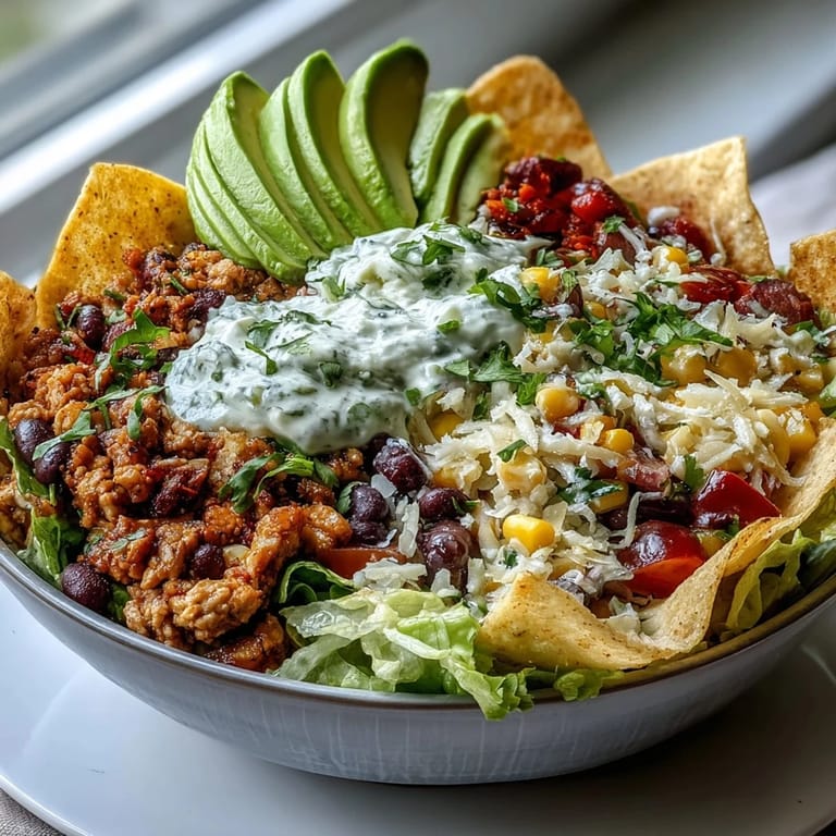 Save There's something undeniably satisfying about a meal that brings together bold flavors, fresh ingredients, and wholesome nutrition—all in one vibrant bowl. These Healthy Easy Taco Salad Bowls with Greek Yogurt Ranch deliver exactly that: a colorful mix of seasoned lean turkey, crisp romaine, sweet corn, creamy avocado, and a tangy homemade dressing that transforms everyday ingredients into something truly special. Whether you're meal-prepping for the week ahead or looking for a quick weeknight dinner that doesn't sacrifice flavor, this taco salad is your answer. It's lighter than traditional taco salads, protein-packed, and endlessly customizable to suit your taste and dietary needs.
