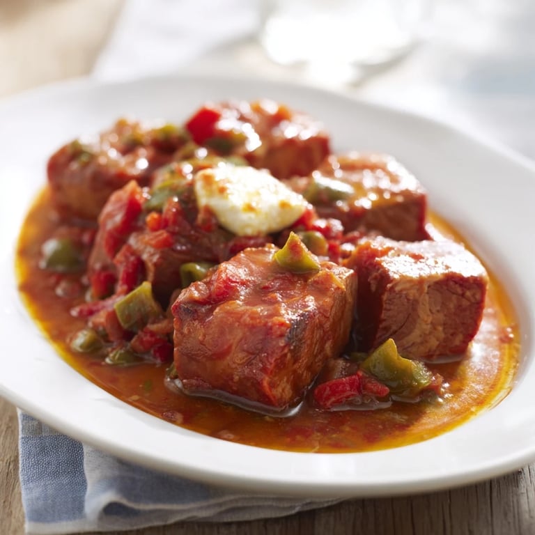 Pork shoulder can be used instead of beef for a varied flavor and texture, maintaining the dish’s hearty character.