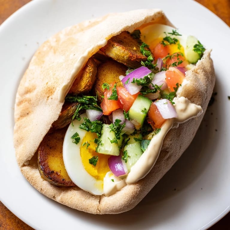 I remember making sabich for a potluck where everyone showed up with casseroles and desserts, and I arrived with these oil-stained pita pockets that somehow became the first thing to vanish from the table. Someone asked me for the recipe that very night, and I realized I'd never actually written it down—just made it from memory and instinct. That's when sabich became more than just street food in my kitchen; it became the thing I make when I want to turn a regular gathering into something people actually remember.
