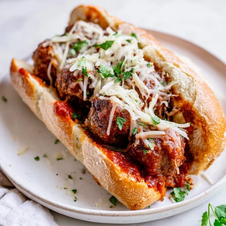 For the best texture, be careful not to overmix the meatball ingredients; gentle mixing preserves tenderness. Baking the meatballs instead of frying reduces mess and ensures even cooking. Toasting the rolls before assembly adds a delightful crunch that complements the soft meatballs and sauce beautifully.