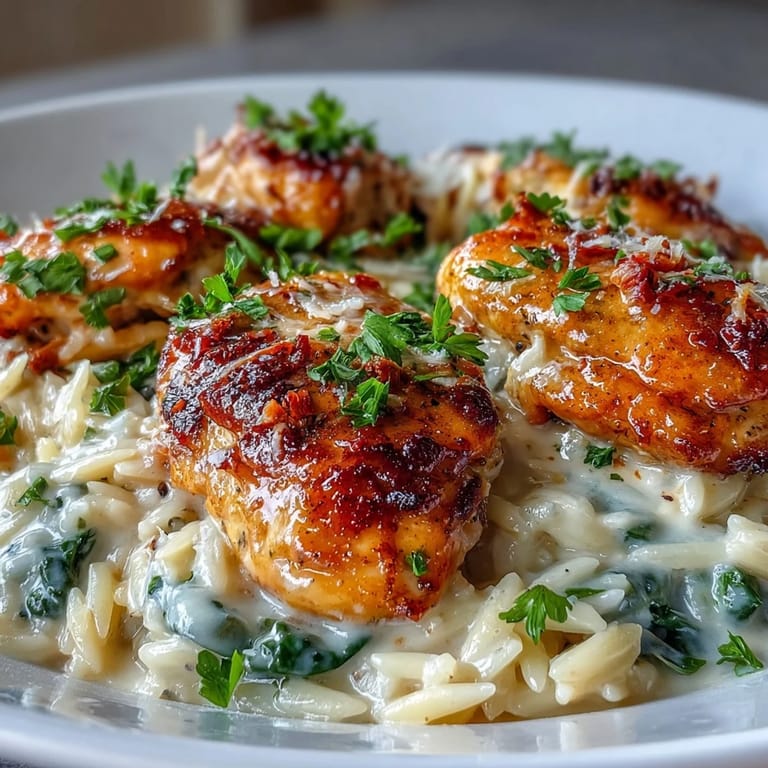 Save Late one Thursday night, scrolling through my phone while dinner plans fell apart, I stumbled on a video of creamy garlic Parmesan chicken bubbling away in a single skillet, and something just clicked. The way the orzo absorbed all that silky sauce, how the garlic seemed to perfume the entire kitchen—I knew I had to try it that same week. What started as a desperate weeknight solution became the meal I now make whenever I want to feel like I've created something restaurant-worthy without breaking a sweat or my sanity.