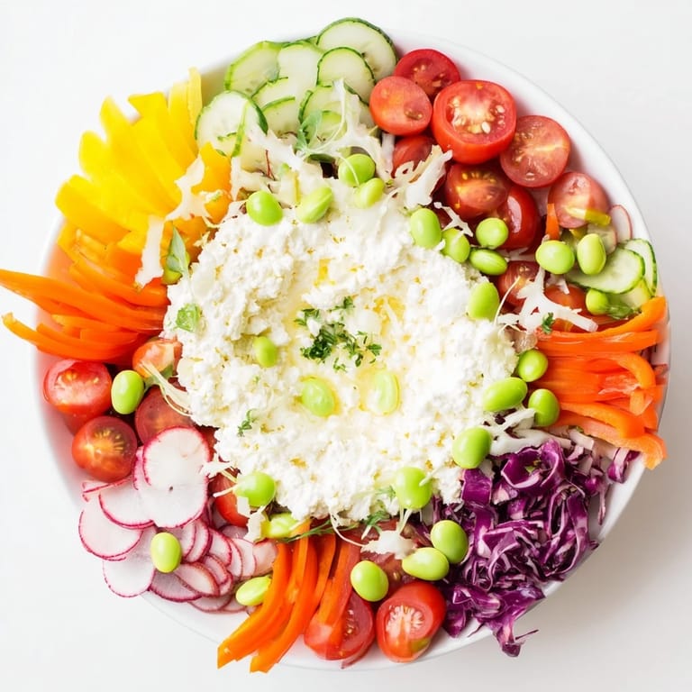 Save I discovered this salad while reorganizing my kitchen during a gray afternoon, surrounded by an almost absurd number of half-used vegetables. A red bell pepper here, some blueberries there, a container of ricotta I'd opened for something else entirely. Instead of tossing them, I arranged them by color on a plate, almost absentmindedly at first, and suddenly it clicked—this wasn't just lunch, it was a small work of art that tasted as good as it looked. My kids actually asked for seconds, which never happens with salad. Now whenever I have a rainbow of produce, I think of that moment and know exactly what to make.