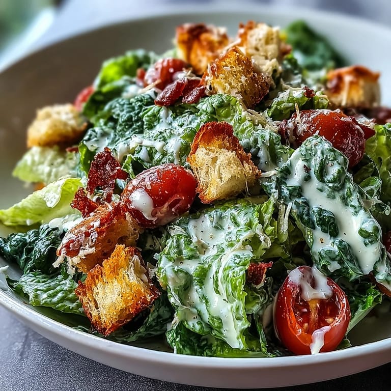 Save This recipe elevates the standard Caesar salad into a robust bowl. By making your own dressing with Greek yogurt and mayonnaise, you achieve a creamy consistency that perfectly coats every leaf of chopped romaine, while the addition of cherry tomatoes adds a bright, juicy contrast to the shaved Parmesan cheese.