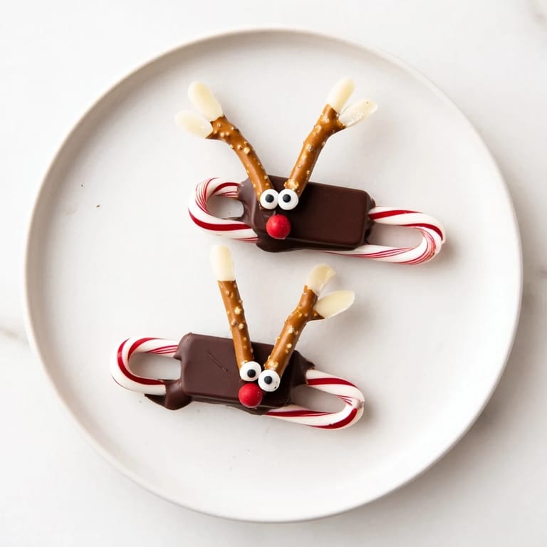 - Decorations: 16 small candy eyes, 8 mini pretzels (twisted shape for antlers), 8 red chocolate candies (such as M&Ms for Rudolphs nose), 1/2 cup white chocolate chips or candy melts (for glue)