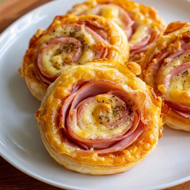 Save Flaky, golden pastry spirals filled with savory ham and melted cheese—perfect as an appetizer, snack, or party finger food.