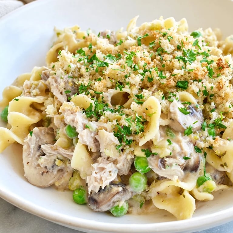 Save My roommate called it the comfort food equivalent of a hug, and honestly, I couldn't argue. I'd been craving something warm and filling on a Wednesday night when the fridge was mostly empty, and somehow tuna noodle casserole felt like the answer—not because it was trendy, but because it promised actual satisfaction without fussing around for hours. The first time I made this version with fresh mushrooms and that crispy panko top, something clicked; it was familiar enough to feel like home, but better than the canned soup version I remembered from childhood.