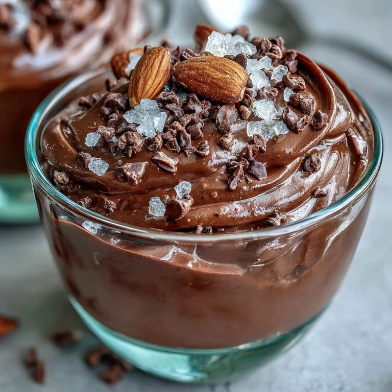 Serve these elegant chocolate mousse cups in small clear glasses to showcase the rich color and texture. For special occasions, garnish with fresh berries or a dollop of coconut whipped cream for extra flair. The contrast between the creamy mousse and crunchy topping makes this dessert particularly satisfying after a light meal. For an impressive dinner party finale, pair with fresh mint tea or a small glass of dessert wine.
