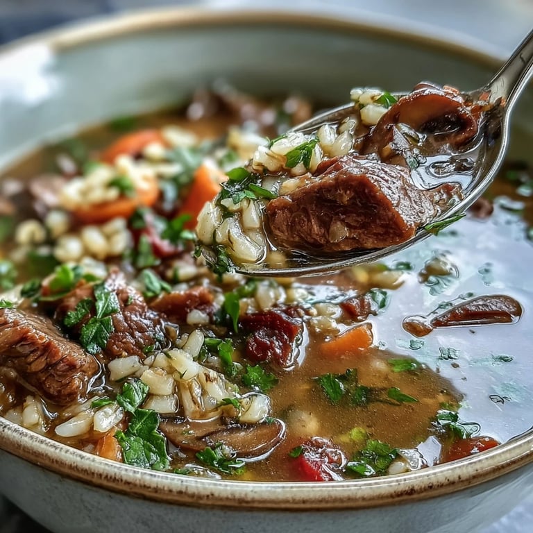 Save There's something about a pot of beef and barley soup simmering on the stove that makes the entire kitchen feel like home. My neighbor once stopped by on a grey afternoon and said the smell alone was worth the visit, and honestly, she wasn't wrong. This soup emerged from my need for something that could feed a crowd without fussing, something that actually got better as it sat. The combination of tender beef, nutty barley, and earthy mushrooms creates this deep, satisfying flavor that doesn't announce itself loudly but rather wraps around you like a warm embrace.