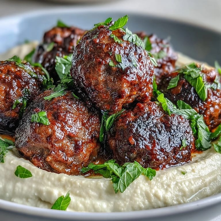 - Chickpeas, tahini, garlic: The base of a silky hummus that acts as both a sauce and a bed for the meatballs.